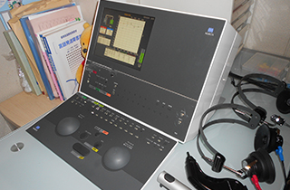 内外2枚の防音扉を装備(院内風景/聴力検査室)、大学病院レベルの優れた遮音環境で言語聴覚士による正確な診断を行います。