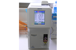 血算(赤血球・白血球・血小板の数など)、CRP(炎症の程度)が迅速(約5分)に測定できます。